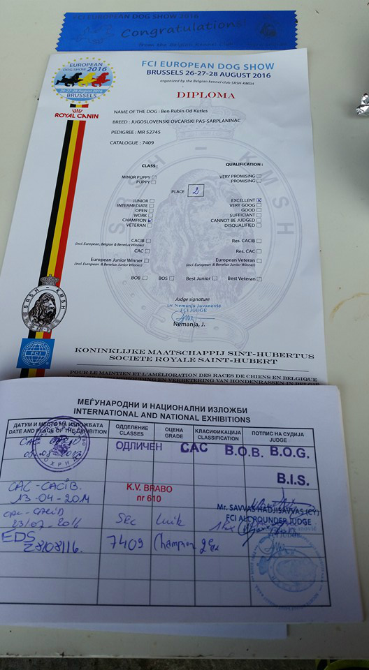 SIMBA CAC - CACIB - BOB MEILLEUR DE RACE pour la 2ième fois il obtient 1er EXCELLENT CHAMPION DE BELGIQUE bravooo SIMBAAA JUGE : Mr SAVVAS HADJISAVVAS (JUGE DE CHYPRE) Specialisé pour les SARPLANINEC