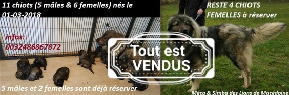 NAISSANCE 31.01.2019 TOUS LES 8 CHIOTS SONT VENDUS Voir plus de photos sur notre page Facebook: Les Lions de Macédoine - Makedonski Lavovi Contact au 0032486867872